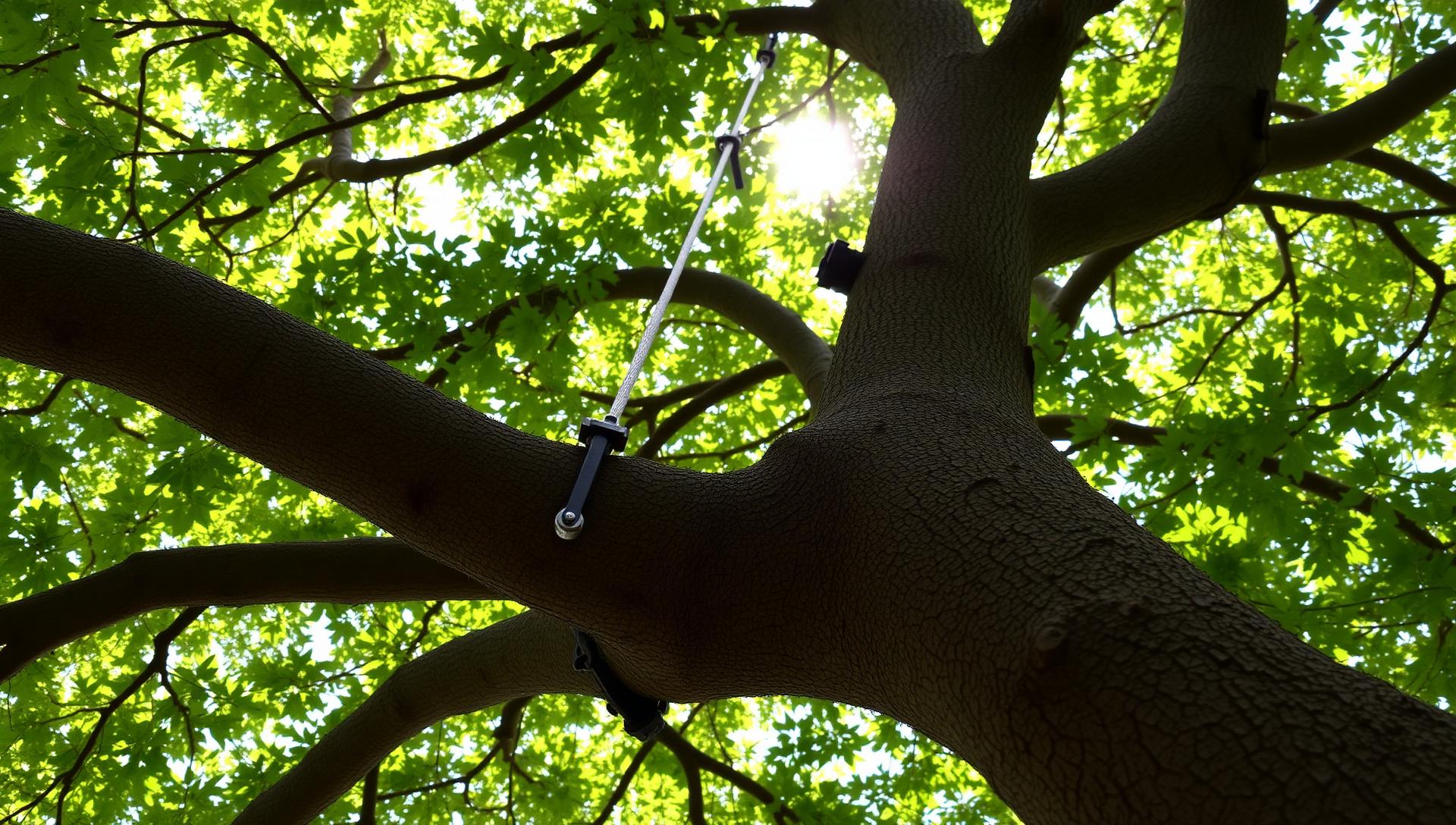 An ISA Certified Arborist assesses the tree first and determines whether cabling is appropriate. If it is, we install flexible steel cable between the limbs being supported, anchored through drilled holes with approved hardware per ANSI A300 standards. For more severe cases (active splits or cracks), we add through-rods that mechanically brace the trunk or branch union. The installation itself takes a few hours per cable. Cabling and bracing require inspection and maintenance over time: we recommend an inspection every 3 to 5 years to check hardware condition and adjust tension as the tree grows. Cabling extends the tree's safe lifespan but does not eliminate risk completely.